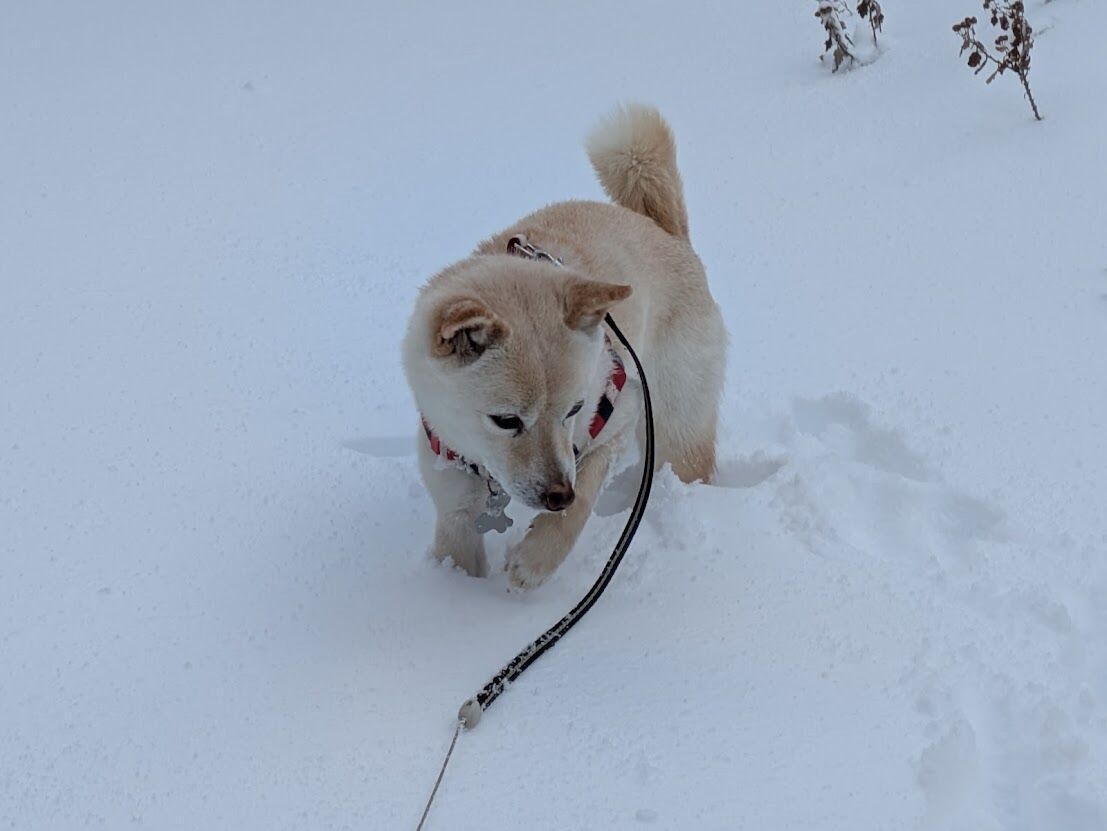 玄関前の通路も分からないくらい積もった。マルコもすっぽり埋まる。
