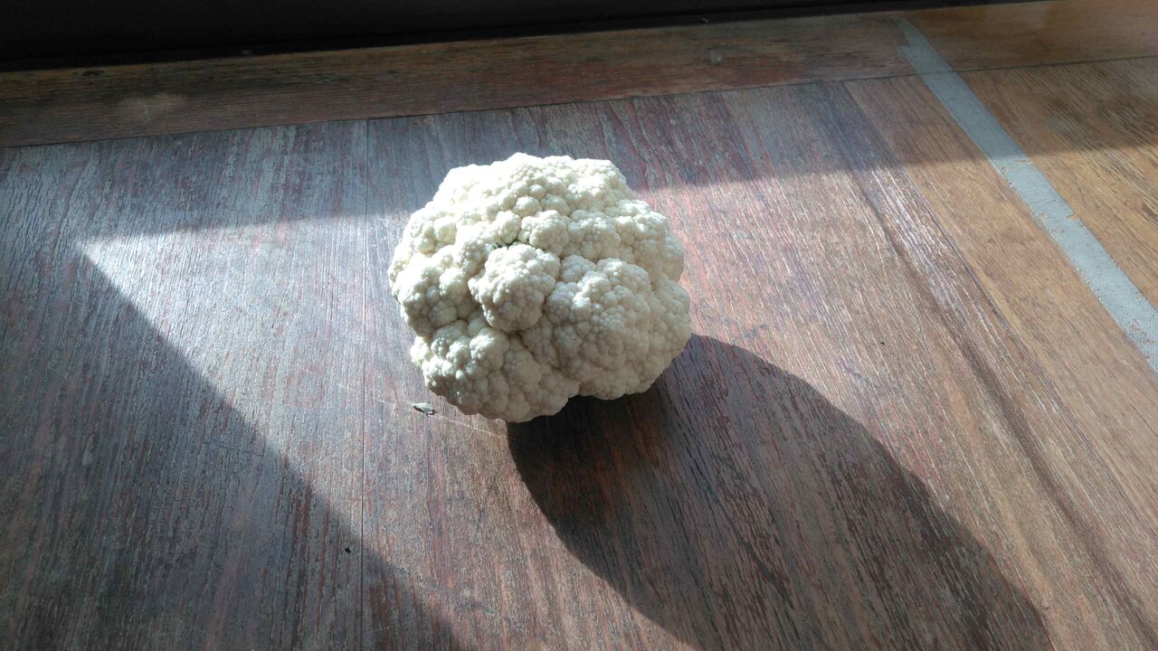 独り暮らしなので朝獲れの大根とサラダ蕪とレタスとカリフラワーにわが家の柿を少し。