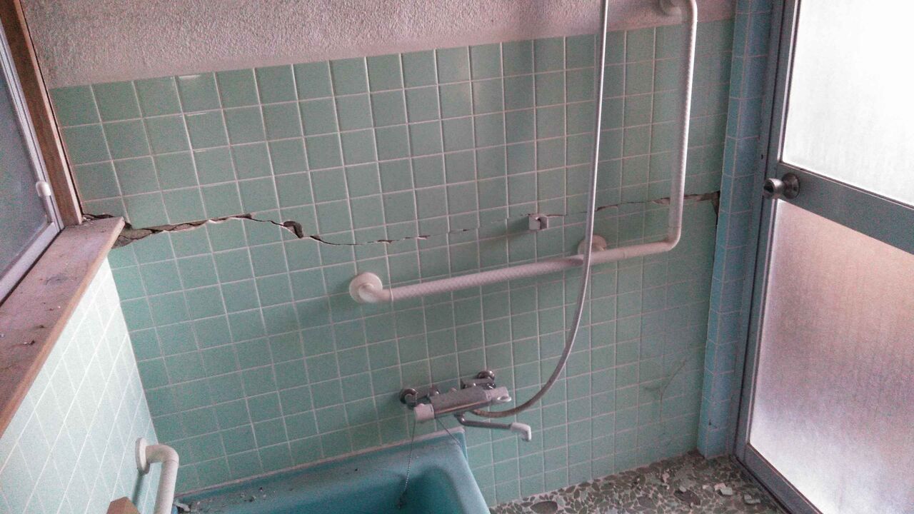 風呂場のヒビもすごい。