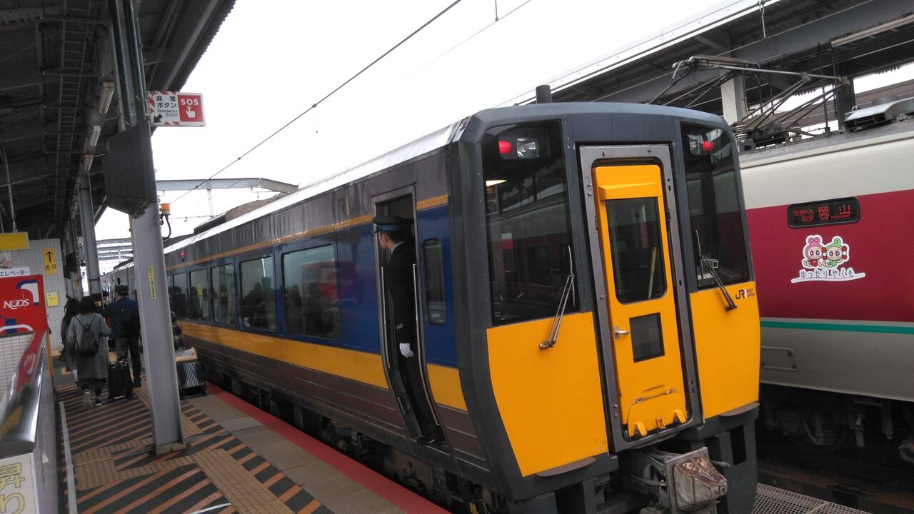 特急なのに指定席1両、自由席1両のわずか2両編成。もちろん自由席。乗客は全員2席を一人で占領。