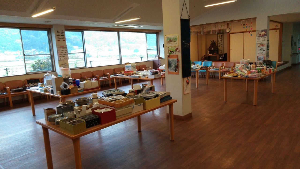 バザーの会場。この他にもまだ衣類など格安で販売。人気でこのあとすぐに満員になる。今年もお手伝いでお買い上げ品の袋詰めを手伝う。三年連続袋詰め。袋詰めのプロになる。