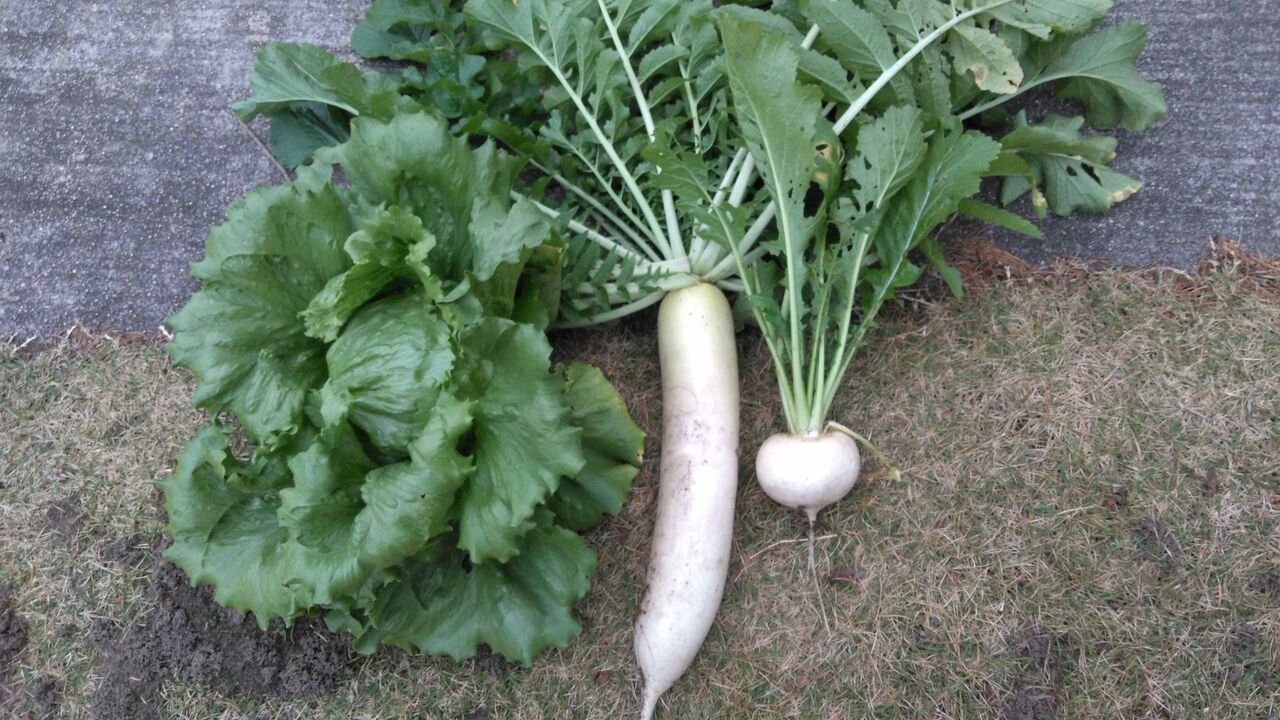大根はもうこんなに大きくなったがまだ少し早いかも。