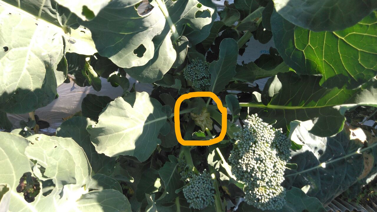 左がブロッコリー・スティックセニョール。真ん中は最初に出来た茎を取った跡。次々と新しい茎が伸びて実をつける。長く伸びた茎も食べる。右が従来の普通のブロッコリー。こちらは収穫してしまうと、後は小さな子供の房が出来るが、大して美味くはない。それに比べ、スティック・セニョールはどんどん茎が伸びて房をつけるから、取れ高も大きいし、お得感がする。去年作った鈴なりブロッコリーも小さな房が沢山できるだけで食感がいまいちだったが、セニョールは長い茎も一緒に食べられるので食べたと言う感じがするのである。茎も柔らかくて美味しい。