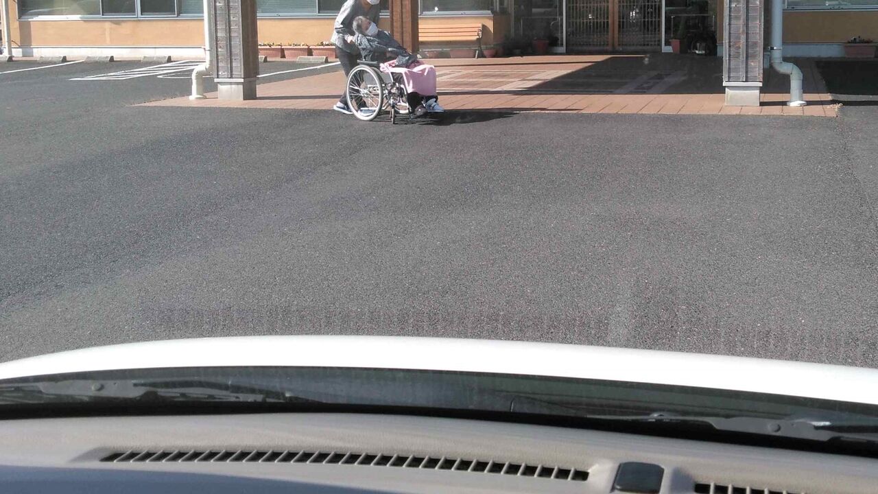 去年だったら車椅子散歩をして一杯に陽を浴びることが出来ただろうにと思うと、可哀想で胸が痛くなる。すると、帰り際、職員さんが天気がいいので外まで車椅子を押してくれてバイバイする。思いがけず陽に当たることが出来た。少しでも陽を浴びることが出来て自分が日光浴したように嬉しくなる。職員さん、有難うございます。