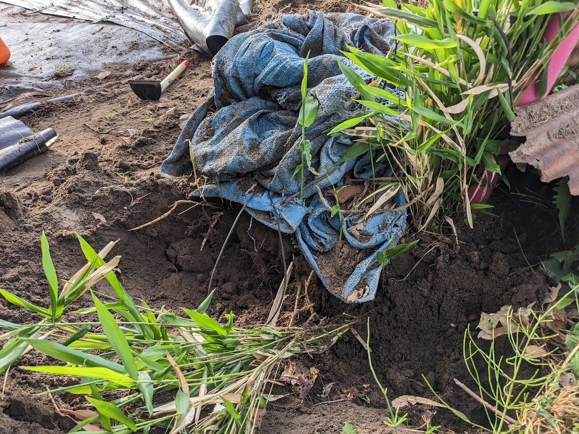 水源の位置を示すパイプ。6mまでは掘らなかったそうだ。午前中3時間強で終わる。飲み水にするわけではないので少々かなけがあってもいい。とにかく水が出ればいいと言う方針で掘った。3人で来て、井戸掘り料は約15万円。積立金は残り15万ぐらいになってしまった。2年越しの騒動だったから、これで10年は無事であって欲しいものだ。
