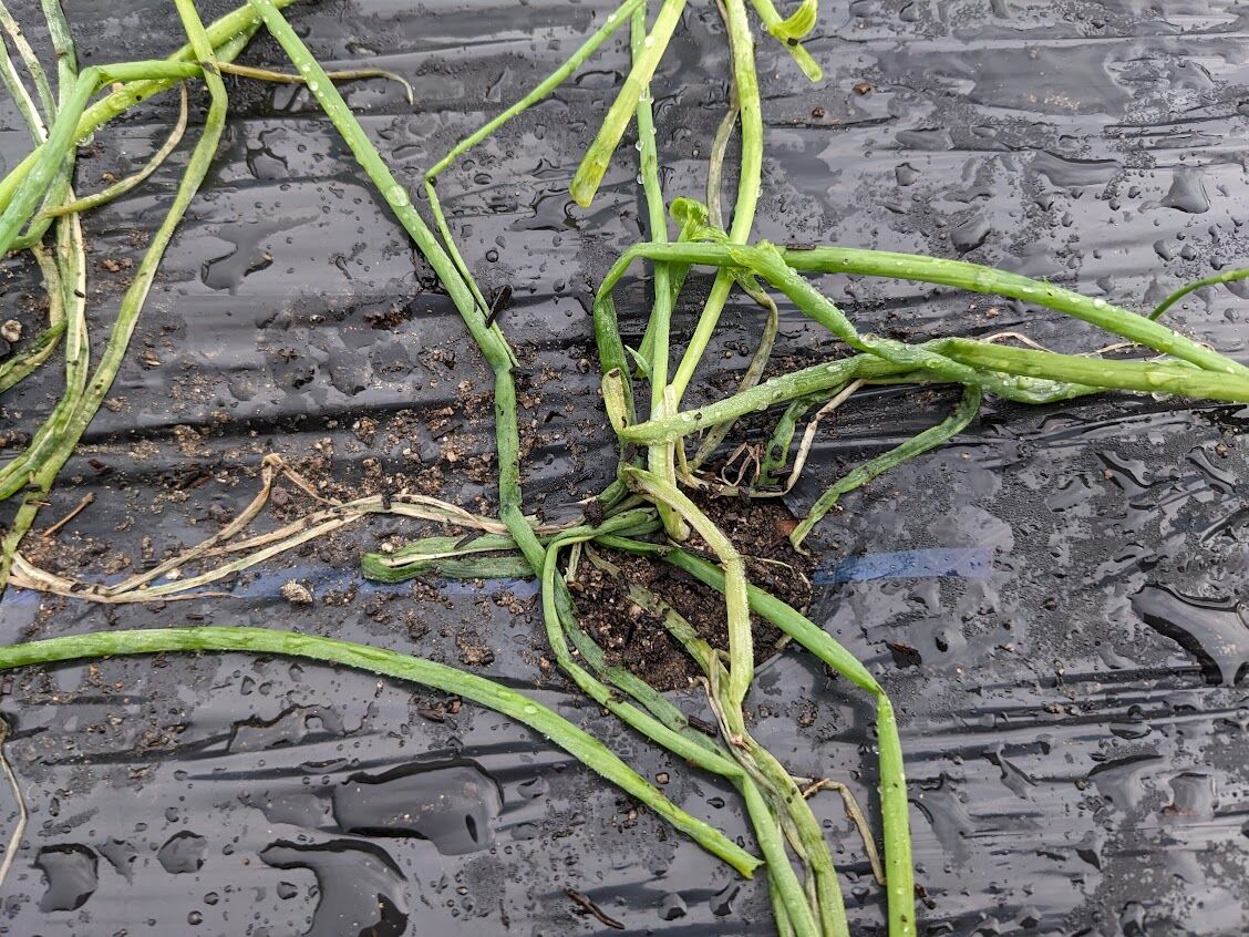 ああ、玉ねぎと春キャベツが心配だ。春キャベツは10本だけだから植え替えは楽だけど、玉ねぎはそうはいかない。予定ではこの後「空豆」と「えんどう類」を植えて終わりにしようと思っていたのに。