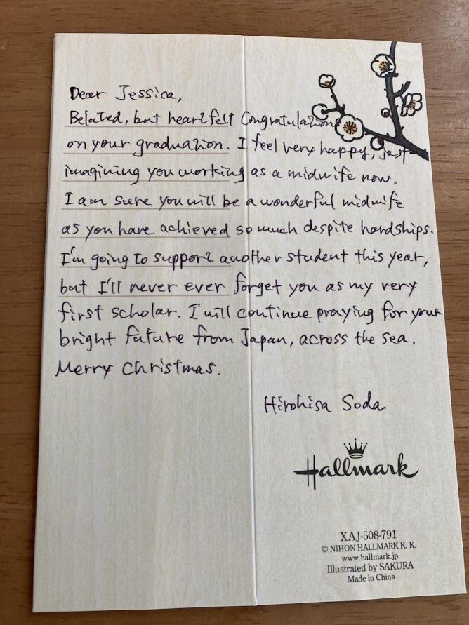 最初にサポートした学生さんは助産婦になり、カイエさんは去年からサポートして、今年度からは2年目になる。パワフルな笑顔もかわいい女学生だ。将来の夢をかなえてくれることを願っている。